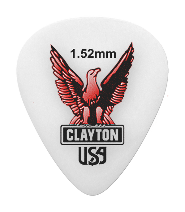 For over 40 years, Clayton Acetal Guitar Picks have been the go-to choice for professional musicians who demand reliability and performance. Featuring the classic Eagle print, these picks are made from ultra-durable Acetal, giving them exceptional strength to resist breakage, even during the most aggressive playing. Designed to provide just the right balance of stiffness and flexibility, they deliver powerful chords without putting excess strain on your strings. The matte surface ensures a firm grip, keeping the pick securely in place. Built to last and trusted by pros, Clayton Acetal picks are the timeless choice for serious guitarists. Made in Clayton's Classic Standard Shape. Available in the following gauges: .38mm, .50mm, .63mm, .80mm, 1.00mm, 1.26mm, 1.52mm and 1.90mm